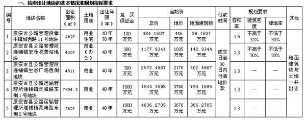 经安吉县人民政府批准,安吉县国土资源局决定以拍卖方式出让五幅地块的国有建设用地使用权。现将有关事项公告如下: