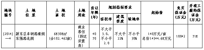 五、申请人可于2014年3月4日至2014年4月1日,到阜阳市集中招投标交易中心土地交易中心向我局提交书面申请。交纳竞买保证金和开、竣工履约保证金的截止时间为2014年4月1日17时30分,以实际到账时间为准。交款人须与申请人名称一致并注明竞买地块编号。