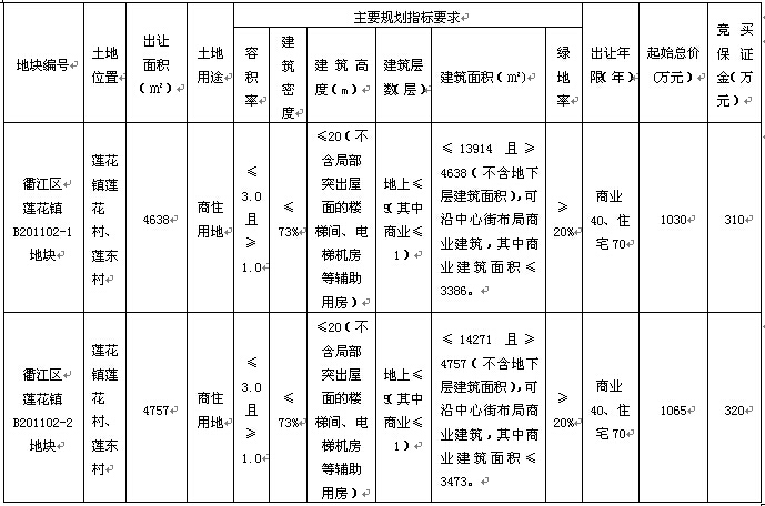 2、衢江区莲花镇B201102-1地块规划用地总面积9930㎡,其中出让面积4638㎡,道路代征面积5292㎡。拍卖起始价1030万元包含道路代征用地规费110.5188万元。