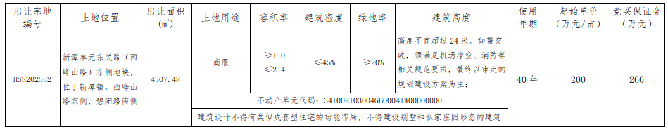 安徽省黄山市12月6日至12月15日挂牌出让西峰山路东侧幅地块使用权
