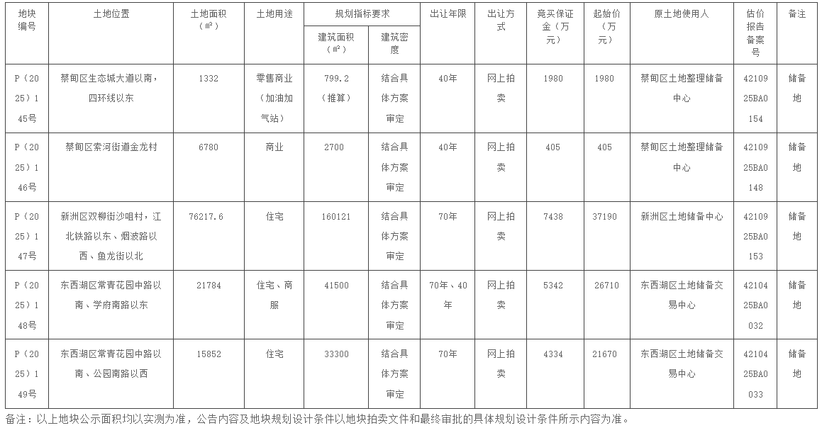 七、本次公开出让的详细资料和具体要求,以拍卖出让文件为准。申请人可自公告发布之日起在武汉市自然资源和城乡建设局网站、武汉土地市场网下载拍卖出让文件电子文本。