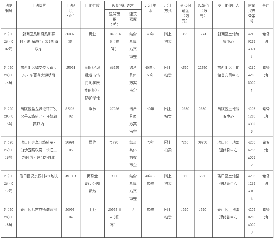 七、本次公开出让的详细资料和具体要求,以拍卖出让文件为准。申请人可自公告发布之日起在武汉市自然资源和城乡建设局网站、武汉土地市场网下载拍卖出让文件电子文本。