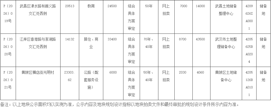 六、本次公开出让公告如有变更或补充,以武汉市自然资源和城乡建设局发布的补充公告为准。