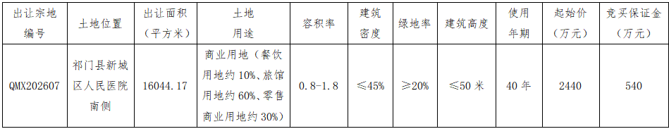 经祁门县人民政府批准,祁门县自然资源和规划局委托黄山市公共资源交易中心以挂牌方式出让以下宗地的国有建设用地使用权。现将有关事项公告如下: